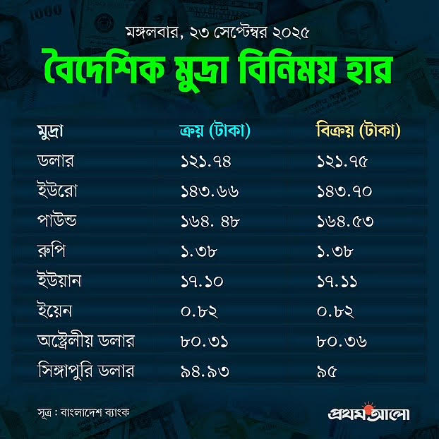 আজকের মুদ্রাবাজার: ডলারের দাম অপরিবর্তিত, অন্যান্য মুদ্রার দামে ওঠানামা