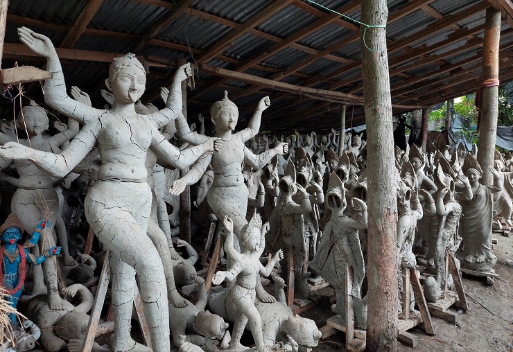 মন্দিরে মন্দিরে প্রতিমা তৈরির কাজে ব্যস্ত মৃৎ-শিল্পের কারিগররা।