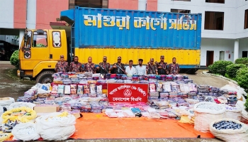 যশোরের বেনাপোলে দুই কোটি ৫৫ লাখ ৬১ হাজার ৯৩০ টাকা মূল্যের এক কাভার্ডভ্যানসহ (ট্রাক) ভারতীয় বিপুল পরিমাণের শাড়ি, থ্রি পিচ,